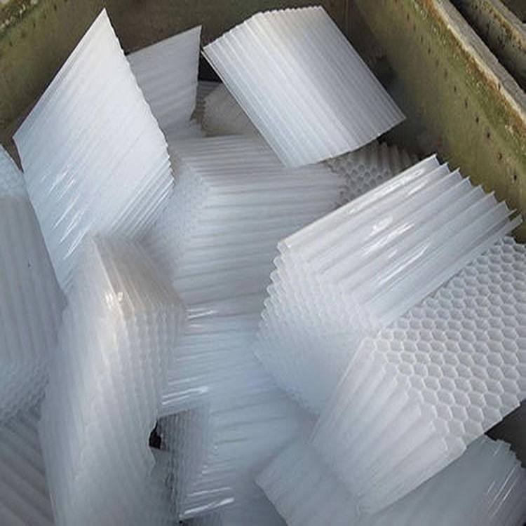 斜管填料是根據(jù)“淺層沉淀”理論為基礎(chǔ)設(shè)計(jì)開發(fā)的一種沉淀池填料,該填料濕周大,水力半徑小,運(yùn)行時(shí)層流狀態(tài)好,顆粒沉降不受紊流干擾,能加速顆粒與水分離并縮短顆粒的沉淀距離。